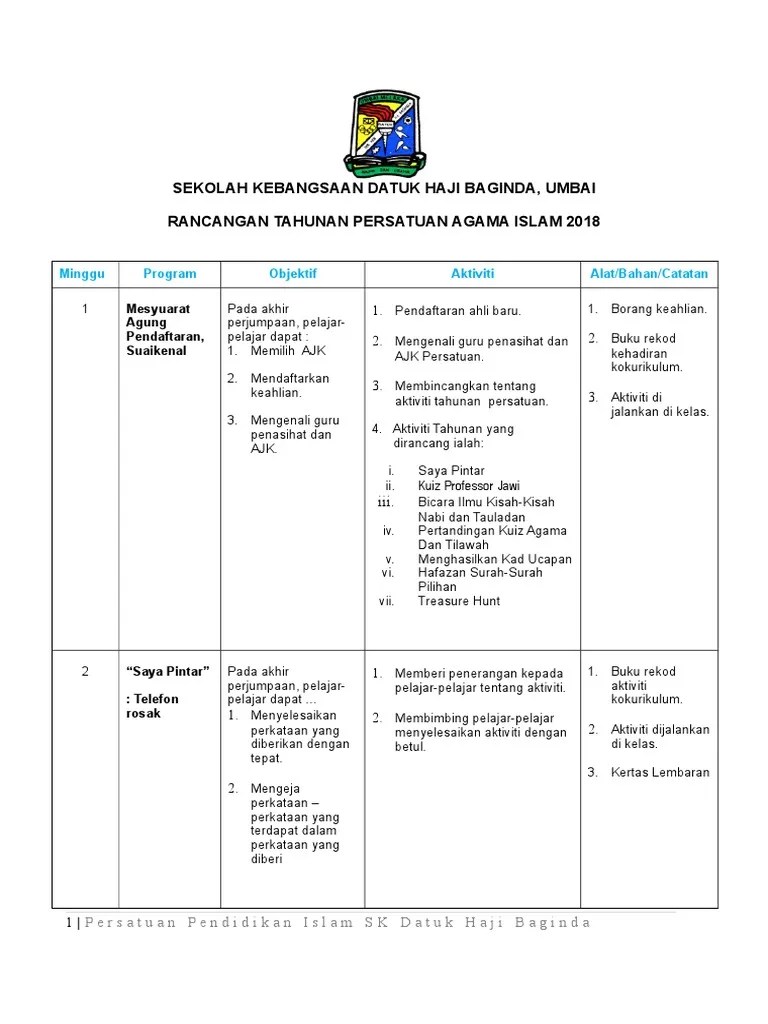 Setiap rabu kebiasaannya murid akan mengikut pelbagai aktiviti kokurikulum sama ada aktiviti unit beruniform sukan permainan ataupun kelab . Sukan permainan bola jaring 19. Aktiviti tahunan panitia pendidikan islam. 25 sample aktiviti permainan kreatif islami merupakan petikan daripada 200 aktiviti . Persatuan agama islam strategi 2 nama projek. Koleksi rancangan aktiviti tahunan persatuan dan kelab sumber pendidikan. Sirah nabi muhammad online worksheet for sekolah rendah. Surau al madinah semesta senarai aktiviti persatuan agama islam tahun 2017. You can do the exercises online or download the worksheet as pdf. 25 sample aktiviti permainan kreatif islami merupakan petikan daripada 200 aktiviti permainan kreatif islami. Sekilas pandang aktiviti kelab agama islam 2019. Kuiz persatuan agama islam · beberapa contoh daripada komuniti kami · 10000+ keputusan untuk 'kuiz persatuan agama islam'.